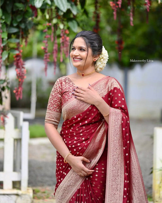 Banarasi Soft Silk Saree with Jacquard Work & Unstitched Running Blouse - Elegant Party Attire for Women