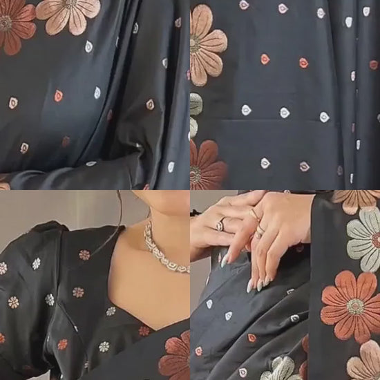 Black Ellegance Soft Silk Gold Copper Saree With Blouse