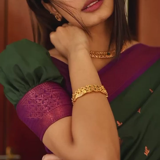 Dark Green Present Banarasi Soft Lichi Silk Saree Beautiful Jacquard Rich Pallu Design Work Zari Woven Kanjivaram Silk Style Saree With Soft Lichi Silk Blouse Piece Ayn Royal Dark Green Butti