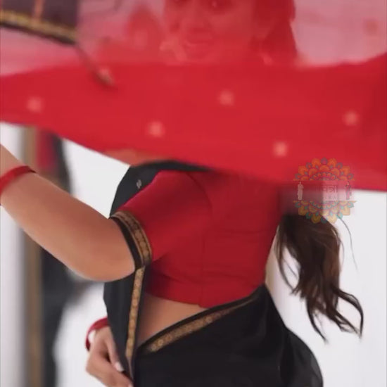 Maheshwari Silk Cotton Saree - BlackAnd Maroonish Red
