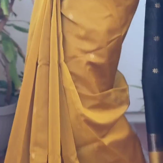Mustard Yellow Premium Cotton Silk Saree With Classy Blouse And Tassels