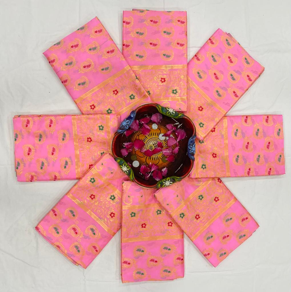 Pink Woven Banarasi Soft Lichi Silk Saree With Unstitched Blouse Piece For Women